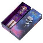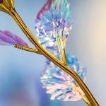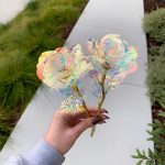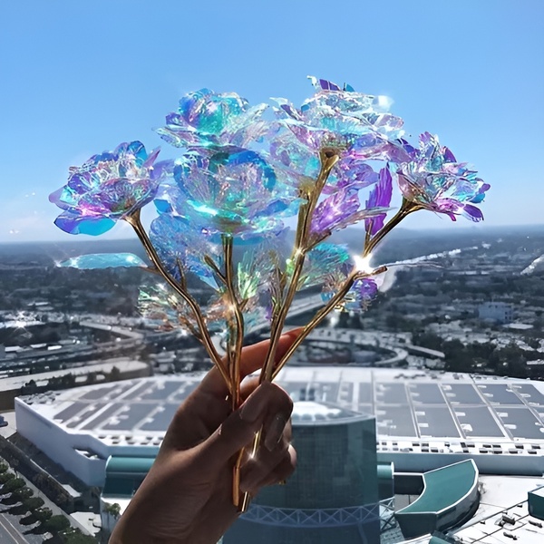 Çdo trëndafil është realizuar me një mbulesë iridescente dhe holografike që shkëlqen mrekullisht në dritë, duke krijuar një shkëlqim si i galaksisë që është thjesht hipnotizues.