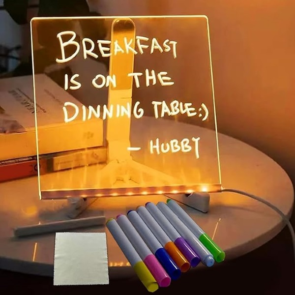 Po kërkon një mënyrë për të lënë mesazhe dashurie për familjen tënde? Pllakat tona të ndriçuara për mesazhe jo vetëm që të lejojnë të lësh mesazhe dashurie për fëmijët apo të dashurit e tu, por gjithashtu ofrojnë mundësinë për të shkruar mesazhe dhe për të krijuar vizatime. Qoftë një kujtesë për të pasur një ditë të mbarë apo një vizatim i ëmbël për t’ua ndriçuar humorin, këto pllaka ofrojnë një mënyrë krijuese dhe ndërvepruese për të komunikuar dhe shprehur dashurinë. Lëre dashurinë tënde të shkëlqejë me pllakat tona të ndriçuara për mesazhe!